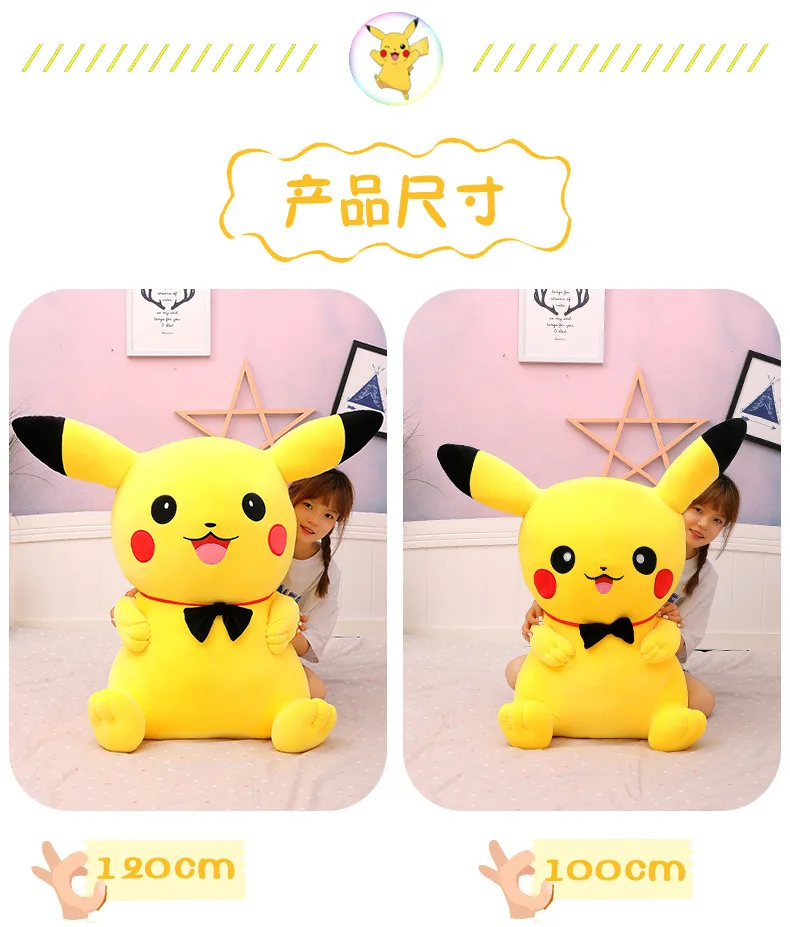 40/50/60/80/100CM Big Size Pokemon Pikachu Plush Toy Kawaii Stuffed Cartoon Anime Comfortable Soft Doll Christmas Plushies Gift